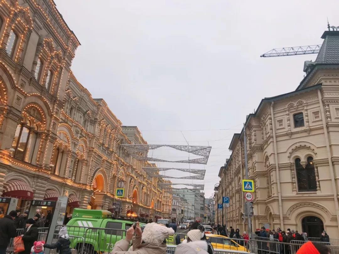 但天色似乎已晚,路上早在四點半就亮起了燈光。瓢潑大雪覆蓋了整個莫斯科,最深的地方已有五公分,讓每一處風(fēng)景都有了冰雪的布景,仿佛置身在童話。