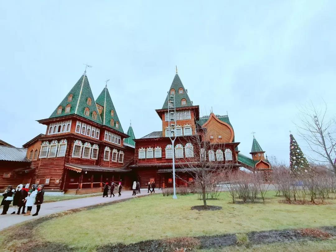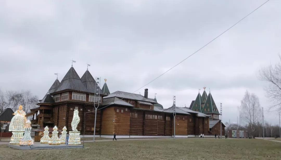 下一站是卡洛明斯克莊園,它擁有“世界第八大奇跡”的美譽,主宮殿由全木質(zhì)結(jié)構(gòu)并采用榫卯原理建成,共有270個房間和3000扇窗戶,絕對是工藝的極高造詣。這時天上零星下起了小雪,為行程帶來了幾分美意。