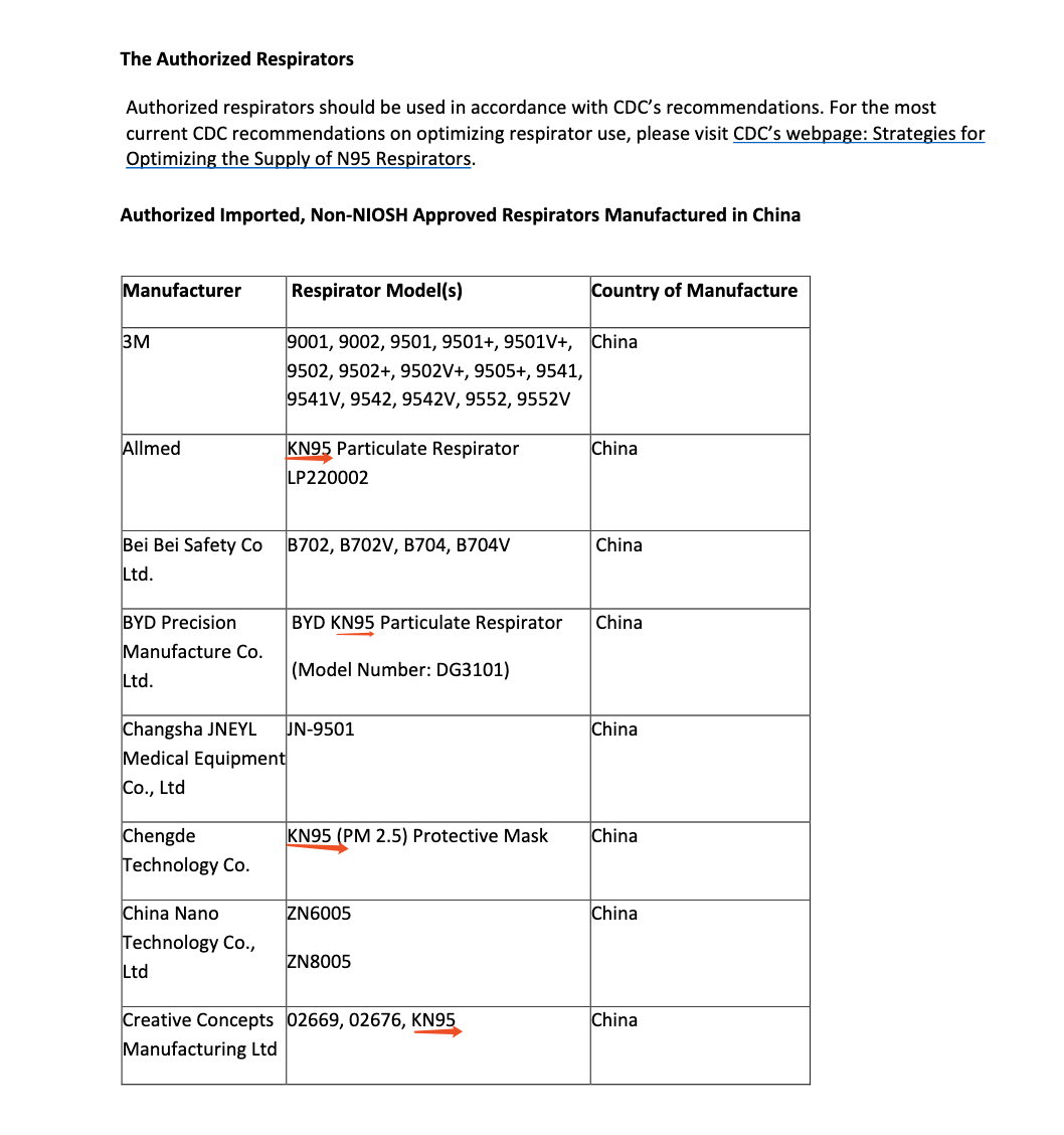 文件顯示,在這些獲得緊急使用授權(quán)的企業(yè)中,使用中國KN95標(biāo)準(zhǔn)生產(chǎn)口罩的達到26家。
