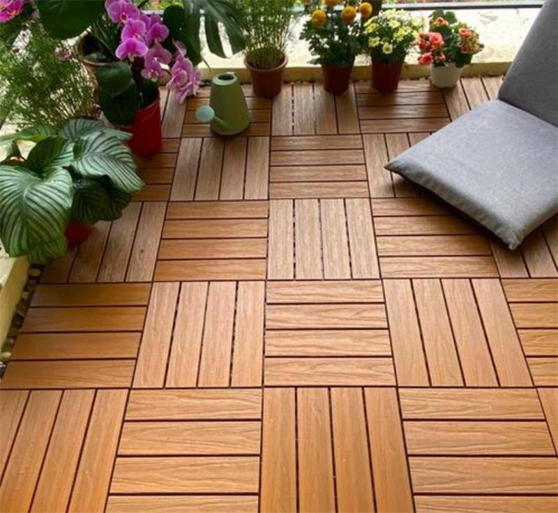 泰安私家庭院小區(qū)陽臺大理石木塑板鋪設